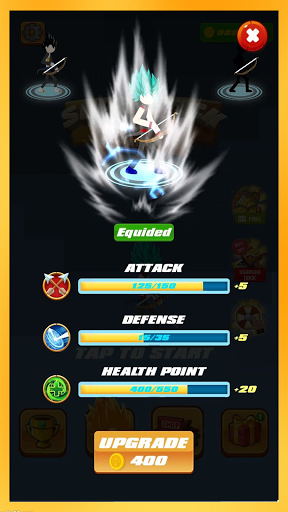 In each battle, they can grow up, increase power as transform from super Warrior Shadow to blue god and other powerup transform as limit breaker stick fight. You can choose one goku and train as well as you can to get the new god position and knock out the enemies.