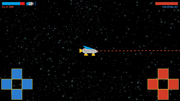 Fight against the alien Celestial Jet as the pilot of the Fighter Craft, a modest but capable vehicle equipped with bombs, a machine gun, and an energy shield that momentarily stops the accumulation of damage.