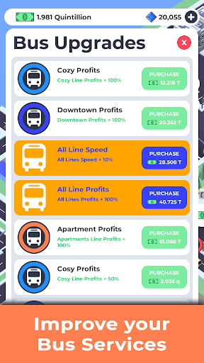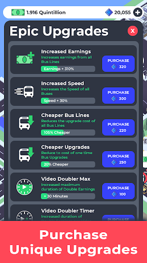 Manage your money wisely and upgrade your Buses, increase their speed and efficiency. Complete dozens of different tasks and earn unique rewards. Unlock a bunch of unique Epic Upgrades and provide your travelers with a premium travel experience.