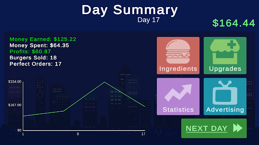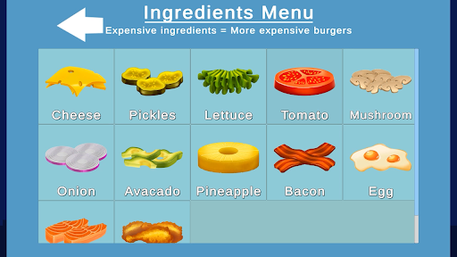 - Lots of in game ingredients and upgrades you can buy with money you make from burger sales!