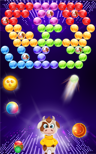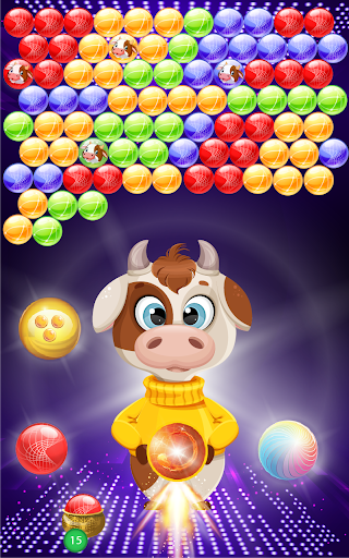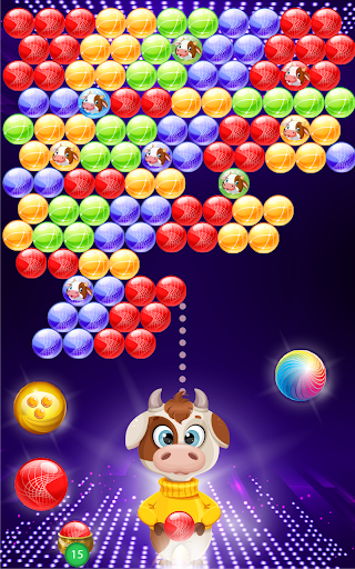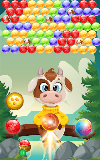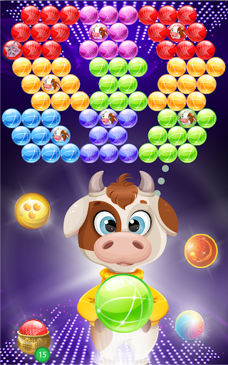 In addition to shoot bubble to win, rescuers will appear in a few levels; your task is to rescue the captive Cows; you are winner after freeing all Cows.