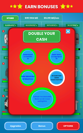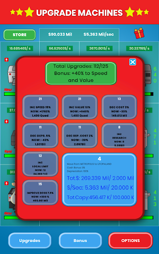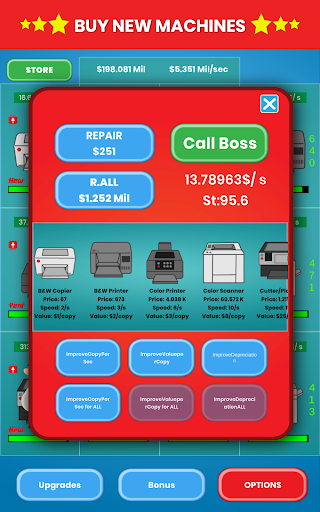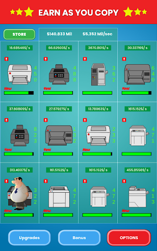 - Lots of Copy Machines, Upgrades, Improvements, Bonuses, Research to increase your money.