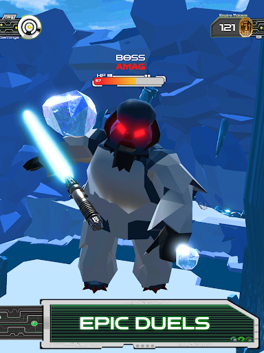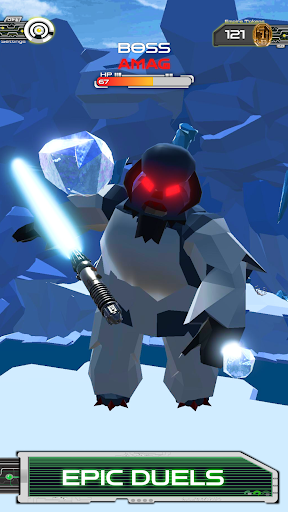 Master duel ! Combat in iconic duels against the best sword fencing masters in the universe. You better be a true blade master to beat all bosses.Face the apprentice of the emperor dark lord Scorn ! Challenge cyber hunter Ghunther ! Fight the bounty hunter gang leader Bobba ! Dethrone the darkside emperor to restore the balance in the galaxy. This is one of those battle action games where you could master duel skills.