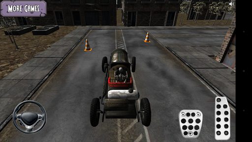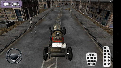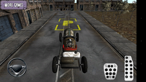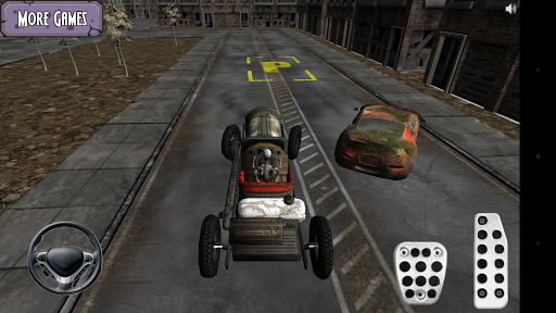 The Parking Dead sets our driving series into an apocalyptic city. Full of ruins, destroyed cars, cracks and the living dead. You're driving a steam punk style car with a skeleton driver. Take to the streets and see if you can get to the end of each level. Once you do, you will see a yellow parking spot that you need to stop on.