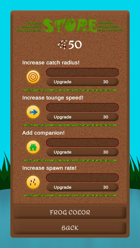 Upgrade your frog to catch faster, catch more and catch with companions!