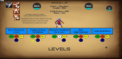 - Workshop mode [Choose a character and choose from 5 spells from all characters].