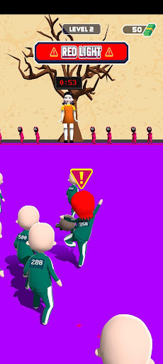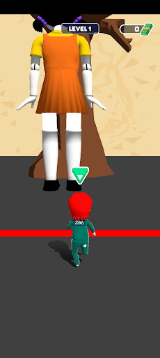 on this run squid game you have to sneaky the finish line before time done also without being seen by the red light.