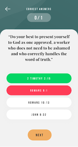 Bible Quiz is a free game that will quiz your knowledge of the holy book. When was the last time you remember the text of a particular verse found in the Bible? Did you get the text of the verse right? Challenge yourself with hundreds of original Bible verses, try and guess where the verse is found in the Bible! Have fun and God bless!