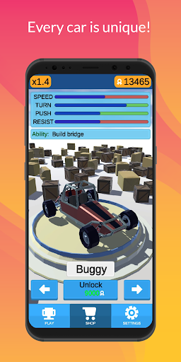 Choose your favorite car and use it's abilites well. Shoot down the most dangerous enemy, place traps for slow threats, and cleverly placed mine can win you a game!