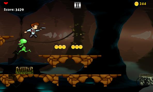 Jump, Fly, Run through levels to shoot Aliens, collect unlimited coins and beat your score every time you run.