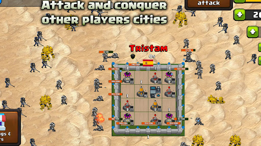 Battle and conquer other player’s cities to gain those territories and expand your empire. Build defenses on your cities to protect them from attacks and from being conquered.