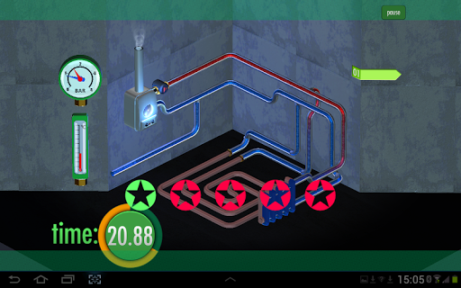 Heating equipment: At this level you will be presented with the schematic of a conventional heating system of the mixed type, i.e. one with radiators and infloor panels. Your job is to achieve correct operation of the system by fixing problems like the build-up of impurities and air in operating system. The safety devices will help you to control any overpressure and excessively high temperatures in the circuit. By using components for hydraulic separation and distribution, you help ensure efficient circulation of hot water in the circuits and achieve optimal comfort.