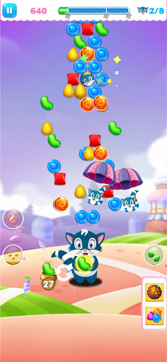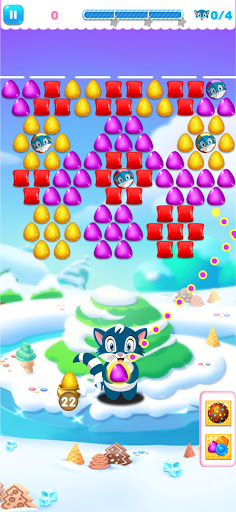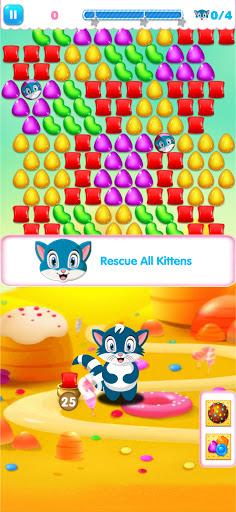 This amusing game consists of a variety of levels. All levels feature sweet and colorful candies. Additionally, you will be able to listen to high quality and nice sounds while playing this game.To be successful in this joyful Bubble Shooter game, you should pop at least 3 same colored candies with the help of an aiming line. In this way, the candies holding cats as hostages will be exploded and the kitten will be free. If you finish the level with fewer moves, you will get a higher score. You will be happy with their happiness when the rescued kittens come together with their mother.