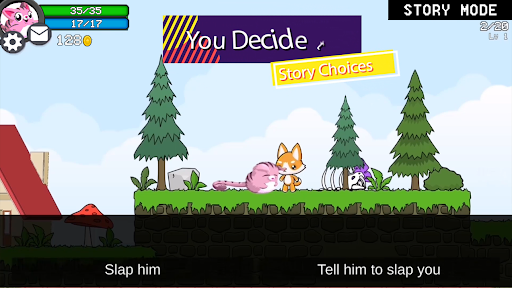 Retro Action 2D style with a decision-driven game story and multiple plot twists.