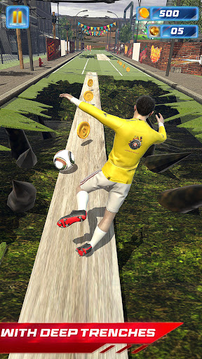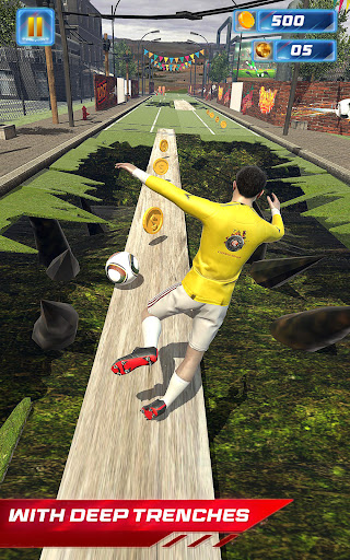 The main game mode in Soccer Surfer is the Endless Mode, where you travel as far as you can without getting caught by the various obstacles. As you progress, you can collect coins and various power-ups to help you progress further. You can also purchase various upgrades using the coins you collect to make your journey even easier.