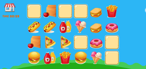 * Fast Food memory game for kids is the classic board game, which help develop memory skills on children.