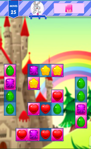 Bunny Candy Adventure is a level wise game in which have to chase a specific score in the given moves to open the next level!