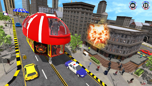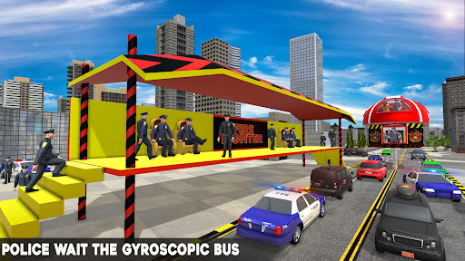 Play futuristic police bus games on urban city roads. This is not only a game but it's the solution to city traffic jams. Drive a gyroscopic police bus through the lines without disturbing traffic to transport jail prisons Drive a high tech transit bus and pick and drop the passengers through city routes on time. Drive this new modern gyroscope bus above road traffic so that traffic flows beneath its wheels without collisions. Follow the game rules and cover the destination without any major accidents. Control coach bus legs with thumb touch. And avoid all types of hurdles like accidents and zebra crossings in gyroscope police bus: prisoner transport games.