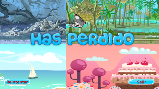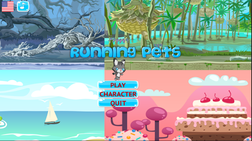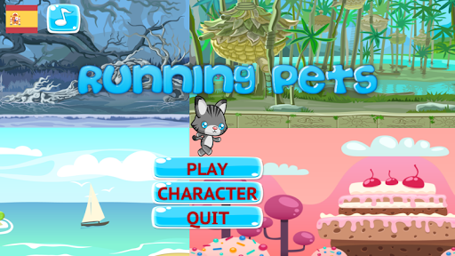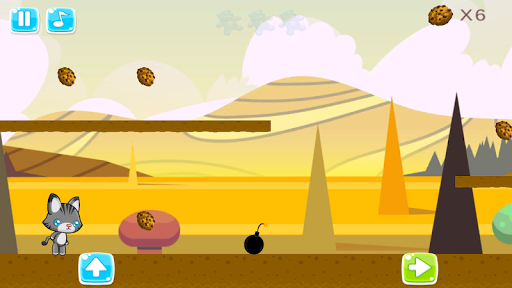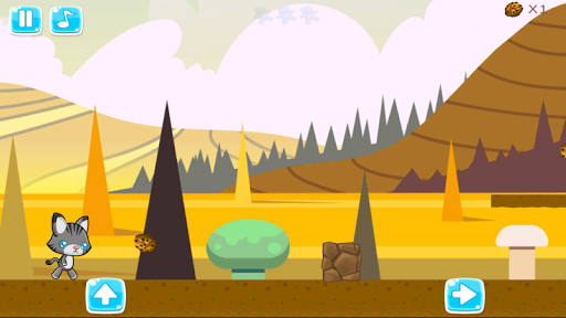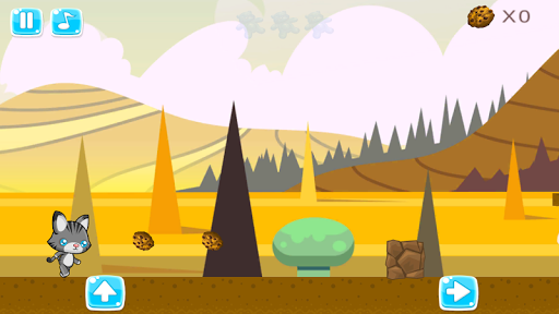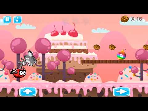 Diversos tipos de mapas con obstáculos y enemigos donde el gatito o perrito corren y saltan recolectando galletas y ositos gominolas como premios. Idiomas inglés y español.