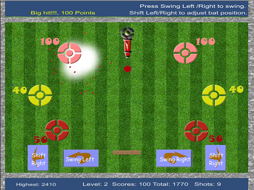 Simple game to practice your hand eye coordination. The Ball Launcher will keep throwing the balls and all you need to do is take a left or right swings with a tap and try to target the points boards.