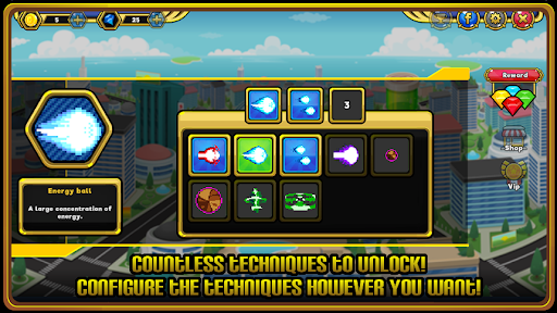 Boost your legendary warriors with powers like energy balls, fireballs, rapid kunai, ninja stars, energy wave, chakra attacks, Z attacks, elemental attacks, cosmos attacks and more!