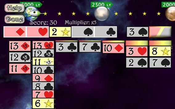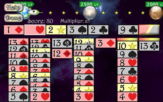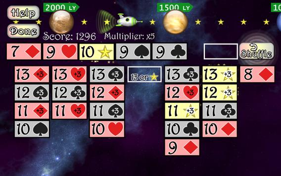 Play this minor variation of Klondike solitaire while a spaceship tracks your score.