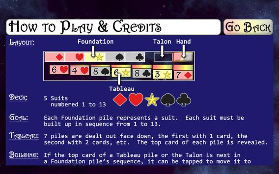 2) Cards are built down in the tableau by switching colors, except Stars can be played on Stars.