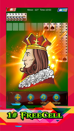 Win a game by creating four stacks of cards, one per suit. The secret of winning is the extra four cells!
