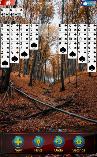 Play with two decks of 52 cards each. Depending on difficulty, the deck consists of one, two or four different suits. Try to collect them with fewest moves possible!