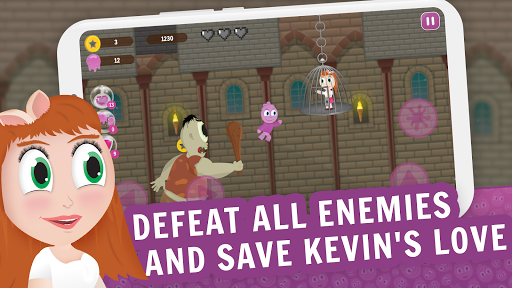 Kevin is a purple creature that lives in a quiet toadstool 🍄 town. When his love at first sight is kidnapped by a giant cyclop 👹, the Hero must act and save his love. The road to Cyclops Castle 🏰 is full of difficulties, but with your help, we can do it. Help Kevin save his beloved ❤️, complete all locations and defeat all enemies, including the Cyclop! ✨