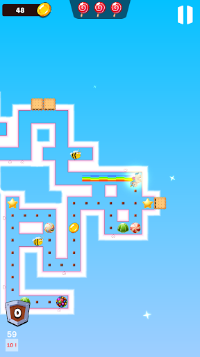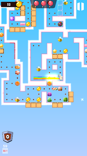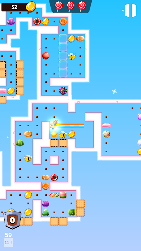 Enjoy a maze made from candies, and find your way out. How to play: - swipe to dash left/right, up/down - collect all the candy - reach the end of the maze and collect the cherry