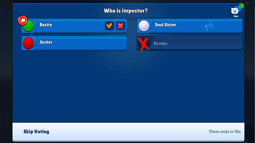Crewmates can win by completing all tasks or discovering and voting the impostor off the ship.