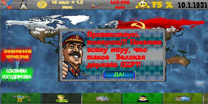 Здесь, ты сможешь управлять Великой Державой! Строить здания, развивать экономику, вести диалог с другими государствами, развивать армию, покупать оружие, продавать продукцию заводов и многое другое!