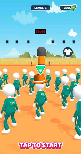 Squid game new challenge is the tug of war between you and your team vs opponents. Tapping will work for you the same. Use of force and speed will guarantee your win in this squid game party.