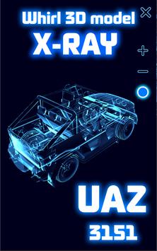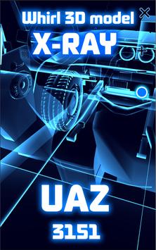 X-Ray UAZ HUNTER 3151 - the application with which you can see the virtual effect of UAZ in X-Ray radiation. Make fun of your friends by pointing your phone camera at real UAZ, so that the X-Ray machine coincides with the size of this machine, and tell them that you were able to scan the UAZ X-Ray beams. You can rotate the 3D model of the machine, by turning your phone to see the car better. And also be able to increase or decrease the size of the 3D model in order to better fit the size of the virtual machine to the present UAZ. Warning, this application only shows you a 3D model of the machine with the effect of X-Ray, and will not be able to scan the current car, because the phones are not capable of. The application is a joke, created to play friends.