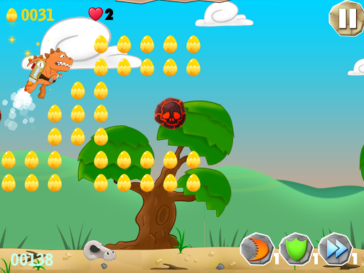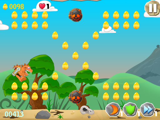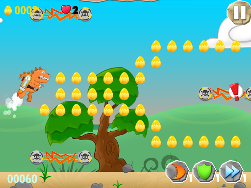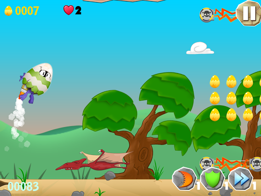 Fly your way as far as you can and collect as many eggs as possible. Use your eggs to buy bonuses and a new dinosaur!
