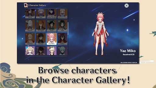 In this Genshin Impact Wish Sim you can get all the coveted characters from Genshin Impact, the chances are realistic and everything is just like in Genshin Impact! You can also browse and build your collection of characters, and enjoy your collection, as the game has a Character Gallery and a Weapon Gallery! Try this Genshin Wish!