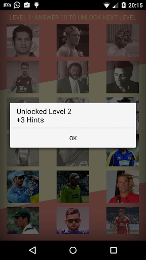 Each level has 20 cricket players and to pass a level and unlock a level you must guess the names of at least 10 players.