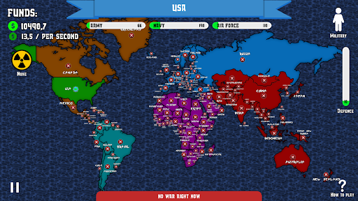It doesn't matter if you are an experienced or inexperienced player, Dictators War: World Conquest is quick and easy to understand and play. You will see our game will meet your expectations and give you countless hours of exciting play. Will you survive the battle, conquer countries, and even conquer the world? Show us your skills in fighting and conquering the world. Think strategically and react quickly while conquering countries and territories in this epic strategy game!