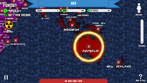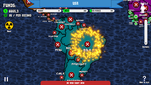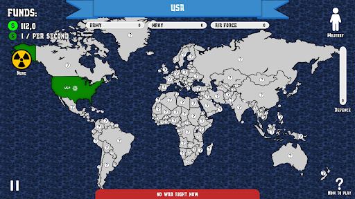 Planet is divided in 5 different regions, your goal is to conquer countries, make their production to work for your army and use it to conquer more territories! Your only way to do it is to upgrade your military in 3 different ways: army, navy and air force. 💥💥