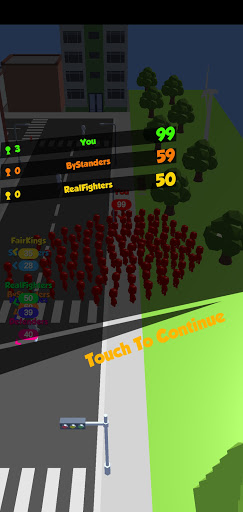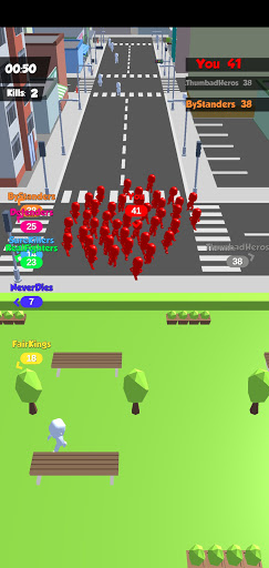 Join Group Crowd 3D is all about bringing people together. To assimilate a new member into your little army all you need to do is approach a random pedestrian of a neutral color. They will automatically join you becoming the same color as you. The more people you run into, the bigger your crowd becomes, but you should always be aware of other players: if their group has more members, yours will be consumed completely and you will have to start from scratch. The good news is, you can do the same as long as you outnumber the opponent