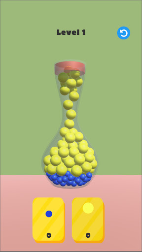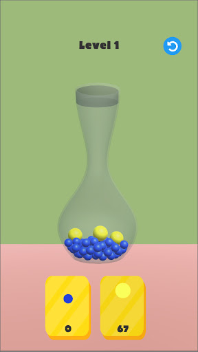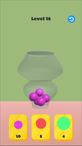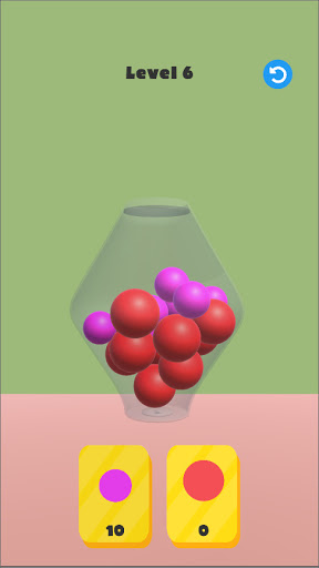 hold the buttons to fill the jars with balls up to a level,different size and colors of balls