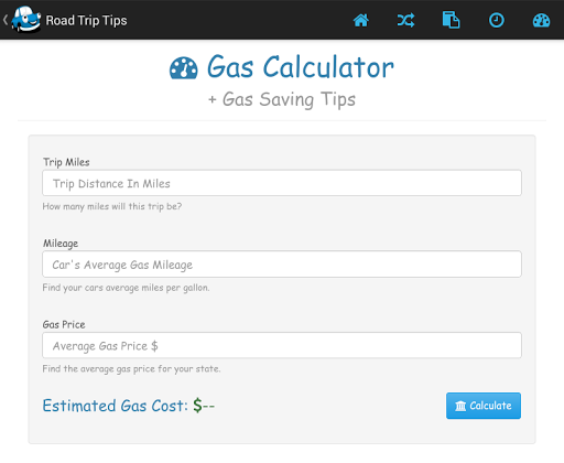 It’s not just a calculator to help determine how much in money your trip may cost in gas, we also listed the top five ways to conserve gas on the road.