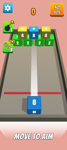 ⭐. Shoot and hit the block with the same color and number, they merge into one. !