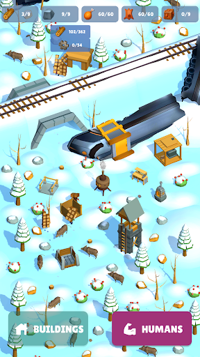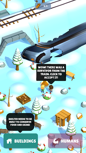 The train crashed in the snowy forests. Frost and wind will kill you and the survivors if you do nothing! You must extract resources, build and improve the equipment of the survivors in order to save everyone from the snowy desert