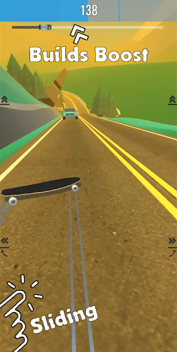 Longboard slide allows you to control your slides via a unique control scheme letting one finger/thumb control steering and the other control drifting. Slides give you boost that allows you to bomb hills quicker!