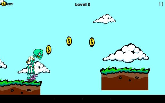 Help the zombie to survive the 5 levels, and don't forget to collect the coins. The more you collect coins, the more you master the game :)