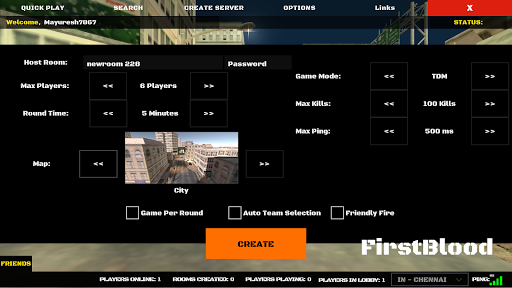Play a Quick match to play against random players or Create a new room to play with your friends.