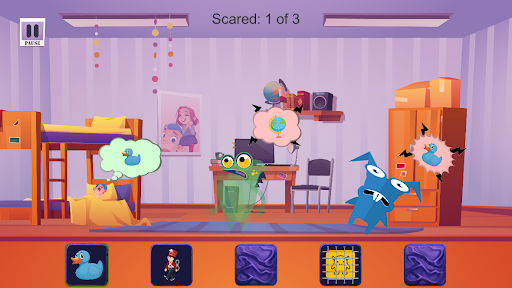 Each card game ends after all the monsters in the room are scared and your brain remembers all the cards. After cleaning a room in the house, it may start to fill up with monsters again, but your brain will already be trained and you can easily help the child sleeping in this room.