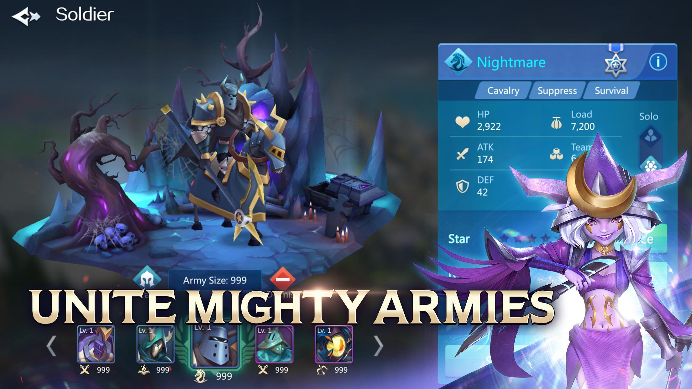 The evil undead awakes with dark power, and the Kingdom of Aurora is now facing the greatest crisis it has ever seen. Wage epic wars and conquer the kingdoms, observe laws to activate the stars and get divine power, and master combat strategy to choose right lineups. Fight alongside your allies for the ultimate glory!
